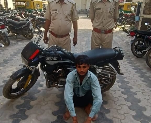 कार्यवाही :- श्रीमान पुलिस अधीक्षक, भिवाडी के निर्देशानुसार पुलिस थाना भिवाडी व जिला स्पेशल टीम भिवाडी द्वारा तावडू नाका पर संयुक्त नाकाबंदी की गई। नाकाबंदी के दौरान एक लडका तावडू की तरफ से हीरो स्पलेण्डर मोटरसाईकिल पर प्लास्टिक के कटटों में बांधकर आया जो पुलिस की नाकाबंदी को देखकर वापस भागने लगा लेकिन पुलिस जाप्ता ने शक्स को मोटरसाईकिल सहित पकडा तथा मोटरसाईकिल को चैक किया तो मोटरसाईकिल पर बंधे प्लास्टिक के कटटे मे हरियाणा निर्मित देशी शराब भरी हुई मिली। शक्स के कब्जे से मिली शराब व मोटरसाईकिल को जप्त किया गया तथा शक्स को गिरफ्तार किया गया ।