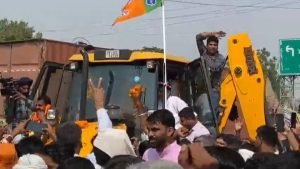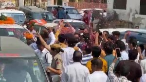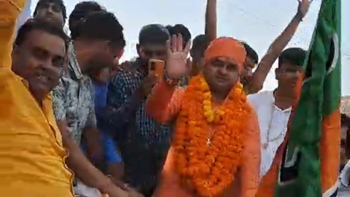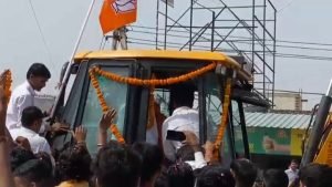 भाजपा प्रत्याशी बाबा बालकनाथ नवरात्रि के पहले दिन गाड़ियों के भारी लवाजमे के साथ भिवाड़ी आए