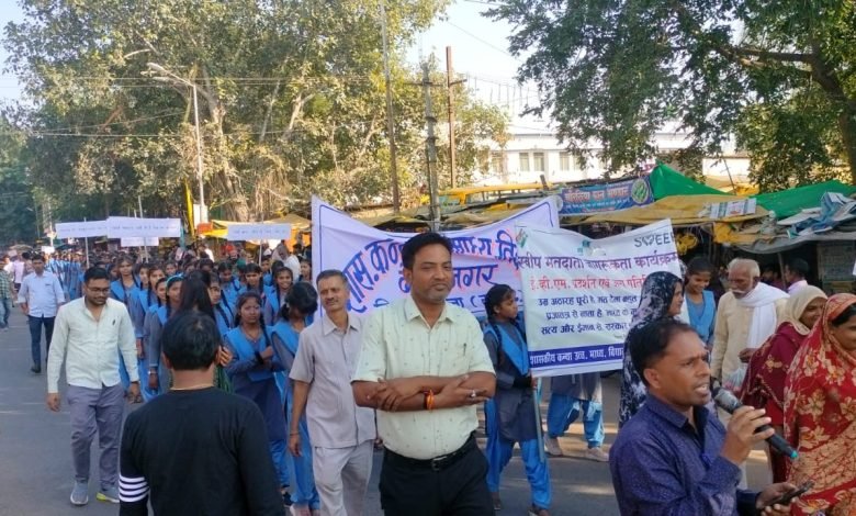 विधानसभा चुनाव अंतर्गत मतदाता जागरूकता रैली निकाली गई जिसका मुख्य मकसद निष्पक्ष और बिना दबाव पूर्ण मतदान संपन्न कराना साथ ही साथ मतदान ज्यादा से ज्यादा हो बोट डाले जनता को संदेश देना इस रैली का मूल मकसद मतदान को गंभीरता से लेते हुए हर डिपार्टमेंट को मतदाता जागरूकता के लिए जनता को प्रेरित करना मुख्य काम होगा इसी कार्यक्रम में सामुदायिक स्वास्थ्य केंद्र से सभी आंगनवाड़ी आशा कार्यकर्ता एवं नगर परिषद सी.एम.ओ के साथ साथ सभी कर्मचारी भी शामिल हुए और शासकीय कन्या हाई स्कूल की बालिकाओं द्वारा नगर के मुख्य मार्ग होते हुए मतदान जागरूकता के लिए नारे लगाए गए