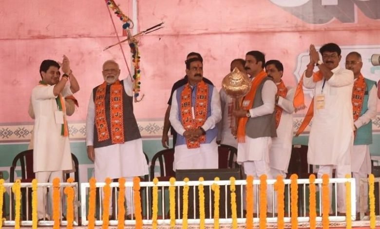गुना में प्रधानमंत्री नरेंद्र मोदी के सामने गरजे केंद्रीय मंत्री ज्योतिरादित्य सिंधिया , कहा कांग्रेस का बोरी बिस्तर बांध कर और ताला लगाकर चाभी सिंध नदी में फेंकना है