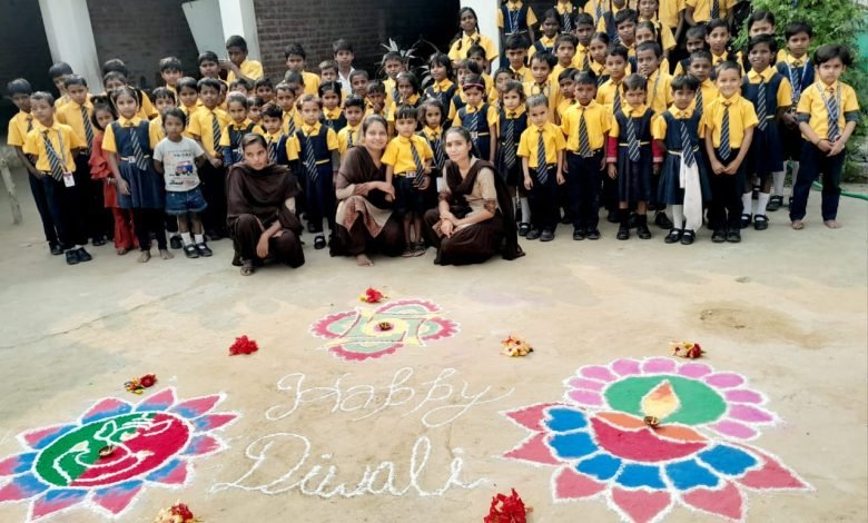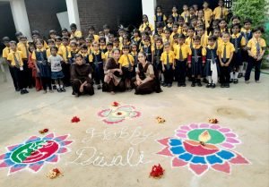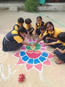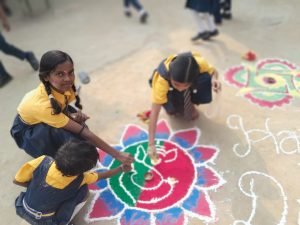 आज दीपोत्सव के पूर्व संध्या पर विद्यालय के बच्चों द्वारा रंगोली बनाई गई
