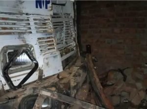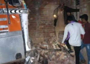 अनियंत्रित ट्रक निर्माणाधीन मकान से टकराया चालक गंभीर रूप से घायल