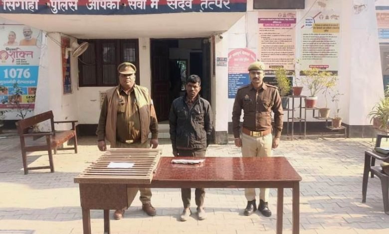 थाना सिंगाही पुलिस द्वारा चोरी की घटना का सफल अनावरण करते हुए 01 नफर वांछित अभियुक्त सरवन कुमार पुत्र नत्थूलाल को अवैध शस्त्र व कारतूस के साथ गिरफ्तार किया गया