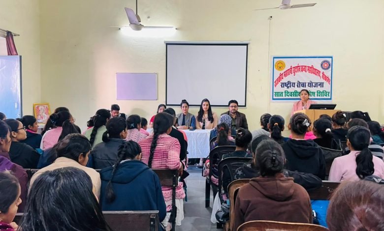 महारानी सुदर्शना महाविद्यालय में चल रहे राष्ट्रीय सेवा योजना (एनएसएस कैम्प) के दूसरे दिन मोटिवेशन स्पीकर विनय हर्ष को आमंत्रित किया गया प्रभारी डॉ. अंजू सांगवा के दिशा -निर्देश में प्रारम्भ हुआ हुआ डॉ सांगवा ने बताया कि जीवन में संघर्ष बहुत है परन्तु इस संघर्ष से लड़ते हुए हमें अपने जीवन को आसानी से निरन्तर चला सकते है। इसके लिए मानसिकता सुदृढ़ होनी आवश्यक है। इसी क्रम में उन्होंने अतिथि विनय हर्ष को संबोधित करते हुए मोटिवेशन पर अपने उद्गार देने के लिए आमंत्रित किया। विनय हर्ष ने छात्राओं को अपने भविष्य के निर्माण के विषय में अपने अनुभवों को साझा करते हुए कहा कि, ‘‘ जीवन में आगे बढ़ते हुए स्वयं के विकास के साथ-साथ समाज व राष्ट्र के नवनिर्माण के लिए हमें अपने आपकों ज्ञान, कौशल तथ सामर्थ्य के साथ सफल व्यक्तित्व का निर्माण करना होगा। इसके लिए यह मैं नहीं कर सकती, लोग क्या कहेंगे, असफल हो गए तो क्या होगा जैसे प्रश्नो के चक्रव्यूह से सकारात्मक सोच के साथ बाहर निकलना होगा।’’ जीवन में अंकों के आधार पर उच्च शिक्षित होने की परम्परा को तोड़ते हुए सामाजिक दुश्चक्रों , विषमताओं को दर किनार करते हुए सपने देखना होगा क्योंकि जीवन ऐसा कोई भी कार्य नहीं जिन्हें आप निरंतर प्रयत्न के बल पर जिद के साथ प्राप्त नहीं कर सकते ज़रूरी है ख़ुद पर भरोसा करने की