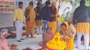 दिनांक 24 दिसंबर 2023 तथा 25 दिसंबर 2023 बड़ा ही पवित्र सौभाग्य साली दिन है आज के दिन गायत्री परिवार करौली कुंड शक्तिपीठ अलवर द्वारा अलवर के अंदर भिन्न-भिन्न जगह पर 12 स्थान पर 24 तारीख को प्रातः कॉल विशाल कलश यात्रा का आयोजन हुआ तथा संध्याकालीन दीप यज्ञ का आयोजन किया गया दिनांक 25 को प्रातः काल 108 =12*9==108 कुंडया यज्ञ किया गया किया लोगों ने बड़े उत्साह के साथ इन कार्यक्रमों में भाग लिया और अपने आप को धन्य किया भिवाड़ी से पधारे डॉक्टर जी आर गुप्ता ने भी इस कार्यक्रम में भाग लिया तथा अपनी सेवाएं अर्पित की कार्यक्रम की टोली ने उनको माला पहनकर दुपट्टा उड़ाकर सम्मानित किया डॉक्टर गुप्ता जी ने सबका आभार एवं साधुवाद किया इस तरह के कार्यक्रमों से हमारे बच्चों में संस्कार बढ़ाते हैं यज्ञ के कार्यक्रम से परिचित होते हैं इस तरह के कार्यक्रम हमारी सनातन धर्म की ध्वजा फहराने में सदैव सहायक होते हैं गायत्री परिवार का उद्देश्य युग परिवर्तन का है सतयुग की वापसी आए ऐसा संकल्प करके पूरे भारतवर्ष में ही नहीं विदेश में विदेश में धर्म का प्रचार किया जा रहा है गायत्री मंत्र वेद मंत्र है सर्वोपरि मंत्र है सूर्य की आराधना का मंत्र है सूर्य देव सृष्टि को अपनी अग्नि द्वारा जीवनदायिनी शक्ति प्रदान करते हैं