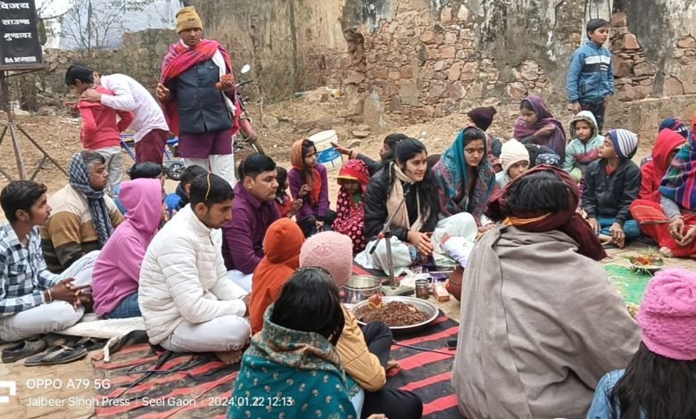 बाबा बजरंगबली के मंदिर से लेकर ग्राम के चारों तरफ भव्य शोभा यात्रा का शुभारंभ किया गया,जिसमें गांव के सभी ग्रामीण एवं महिलाएं , युवक, बुजुर्ग आदि लोगों ने उत्साह के साथ में भाग लिया। हजारों की संख्या में गलियों में राम भक्त नाचते ,गाते नजर आए । यात्रा प्रारंभ होकर गांव की गलियों से होते हुए मंदिर पहुंची। जहां पर ग्रामीणों द्वारा शोभायात्रा में शामिल सभी ग्राम वासियों व मनमोहक झांकी का पुष्पवर्षा कर स्वागत किया।शोभायात्रा में ग्रामीणों द्वारा जय श्रीराम के नारे लगाए गए, जिससे कस्बे की गलियां गूंज उठी चारों तरफ फूलो से जगह-जगह शोभायात्रा का पुष्प वर्षा कर स्वागत किया गया। ग्रामीणों ने बड़े उत्साह के साथ शोभायात्रा में भाग लिया। इस कार्यक्रम का आयोजन बाबा बजरंगबली के मंदिर में सिंगर भूपेंद्र सिँह राजपूत एंड पार्टी द्वारा राम नाम के सुन्दर -सुन्दर भजनों से भगवान को ख़ुश किया। ये कार्यक्रम पंडित सतीश के निर्देशन मे किया गया। इस दौरान अन्य स्टाप मास्टर जयपाल चौधरी, मंगल सिंह चौधरी, राकेश चौधरी, राकेश राजपूत, जोगेंदर चौधरी, हरी राम, बजरंग राजपूत, बीरसिंह चौधरी दिनेश प्रजापति, लक्ष्मी प्रजापति, बंशीधर प्रजापति भी उपस्थित रहे।