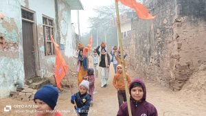 श्रीराम मंदिर प्राण प्रतिष्ठा के उपलक्ष में ग्राम मांघा का माजरा में निकाली भव्य शोभायात्रा