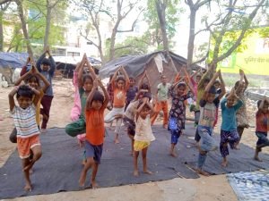 झुग्गियों में ओपन एयर क्लास के बच्चों ने मनाया योग दिवस