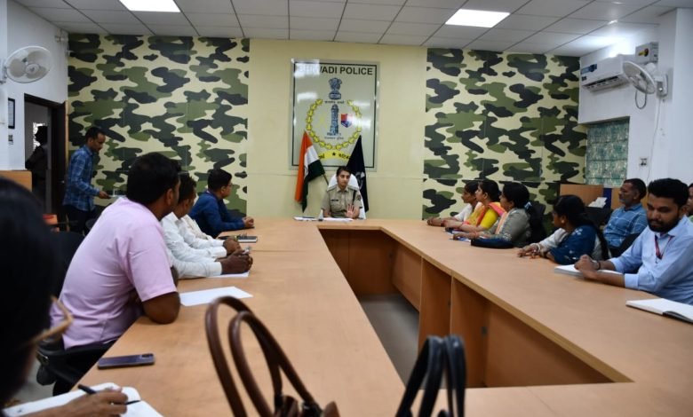 जिला पुलिस अधीक्षक महोदया सुश्री ज्येष्ठा मैत्रेयी द्वारा, सभी स्कूल सचांलको की मीटिंग ली गई। जिसमें सभी स्कूल संचालको की समस्याओं को सुना और उनके सुझावो को सुना जाकर उचित कार्यवाही करने हेतु चर्चा की गई।