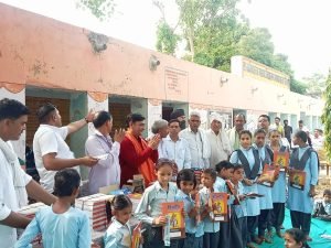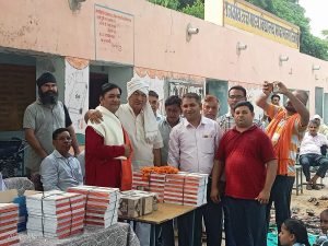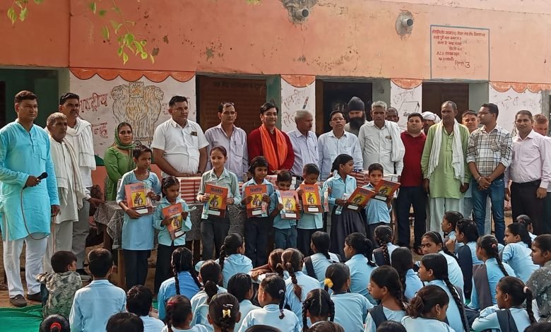 तिजारा ब्लॉक के मंढा गांव में स्थित राजकीय उच्च माध्यमिक विद्यालय में, रिटायर्ड प्रिंसिपल सुमेर सिंह मेघवाल ने अपने स्वर्गीय बेटे निर्मल एडवोकेट की प्रथम पुण्यतिथि पर विद्यालय के समस्त बच्चों को पाठ्य सामग्री का वितरण किया। इस अवसर पर एडवोकेट रामफूल गुर्जर ने कहा कि प्रथम पुण्यतिथि की यादगार में, रिटायर्ड प्रिंसिपल सुमेर सिंह मेघवाल ने बच्चों को पाठ्य सामग्री का वितरण किया है, और इसके बाद मोनी बाबा गौशाला में जाकर गौ माता को गुड और चारा खिलाया जाएगा। एडवोकेट रामफूल गुर्जर ने इस अवसर पर आए हुए सभी लोगों का आभार व्यक्त किया। इस अवसर पर उपस्थित वक्ताओं ने बच्चों को अनुशासन में रहकर, अपनी पढ़ाई करने एवं मोबाइल से दूर रहने की सलाह दी। इस मौके पर गहनकर सरपंच धर्मपाल गुर्जर, एडवोकेट रामफूल गुर्जर, रिटायर्ड प्रिंसिपल सुमेर सिंह मेघवाल, एडवोकेट हरिराम गुर्जर, राजेंद्र सरपंच, बालकिशन सैनी प्रधान, आचार्य विजय सेवक, शीशराम जी, राजकुमार जी, सूरत खैरिया, प्रिंसिपल संजीव चौधरी, सुशीला मैडम प्रिंसिपल, संजय शर्मा, रामपाल जी, संतराम जी, सुनीता मैडम, कीर्ति मैडम, प्रतीक मैडम, डालूराम जी, अभय गुप्ता, अक्षय गुप्ता सहित क्षेत्र के गणमान्य लोग एवं बच्चे उपस्थित रहे।