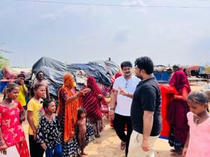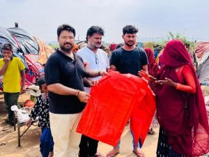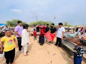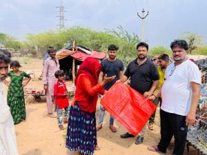 कृष्णा सेवा संस्थान द्वारा जरूरत मंद बस्ती में तिरपाल व सहायता सामग्री का वितरण