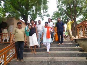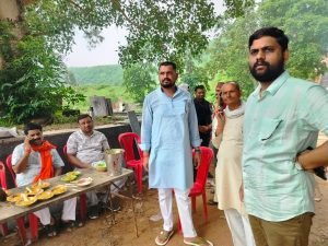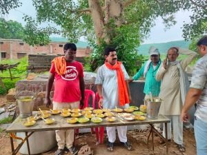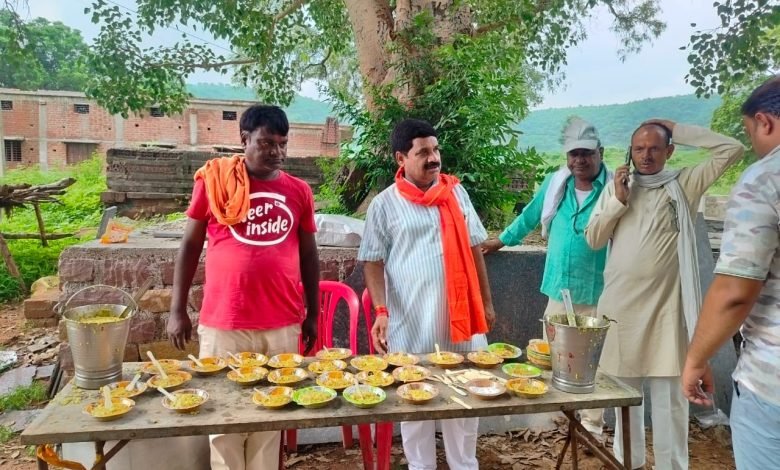 सावन के पहले सोमवार को गुनौर विधायक राजेश वर्मा पहुंचे सिद्धनाथ आश्रम दर्शन कर बाटी खिचड़ी