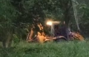बिनौलिया गांव में निजी प्लॉट में खड़े हरे पेड़ों को जेसीबी मशीन से उखाड़ा