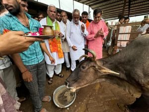तिजारा क्षेत्र में स्थित श्री मोनी बाबा गौशाला एवं आश्रम सूरजमुखी में गोपालन राज्य मंत्री जवाहर सिंह बेढम ने गौवंशो को मीठा दलिया खिलाकर गौ पूजन किया। गौशाला का निरीक्षण कर कमेटी की बैठक और गौशाला की योजनाओं एवं प्रगति की समीक्षा की बेढम ने प्रधानमंत्री नरेन्द्र मोदी और मुख्यमंत्री भजनलाल शर्मा की पहल पर पर्यांवरण को स्वच्छ और हरित राजस्थान की संकल्पना को साकार बनाने के लिए गोशाला में एक पेड़ गौ माता के नाम पर लगाया।बेढम ने गौवंश संरक्षण एवं संवर्द्धन के लिए योजना बनाने के लिए गौशाला कमेटी की तारीफ की। गौशाला कमेटी ने मंत्री बेढम का गौमाता की मुर्ति देकर सम्मानित किया।इस अवसर पर कमेटी के अध्यक्ष तेजपाल नागर, उपाध्यक्ष बने सिंह भिदुडी, सचिव देशपाल यादव, कमल गुर्जर, विरेन्द्र सैनी, यशपाल आचार्य, रतिराम सरपंच, सुरेन्द्र भिदुडी, सुरेश गुप्ता, विक्रम गुर्जर, नरेन्द्र पटेल, कमल यादव, अनिल दहिया, मुलचंद चौधरी सहित अन्य गणमान्य लोग उपस्थित थे। स्वागत कार्यक्रम का संचालन देशपाल यादव ने किया।