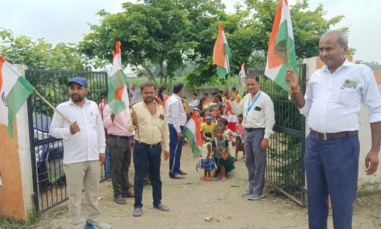 बस्ती -विकासखंड विक्रमजोत बस्ती में जल जीवन मिशन योजना अंतर्गत के तत्वाधान में ध्वजारोहण पंचायत भवन एवं विद्यालय में किया गया जिसमें ग्राम पंचायत के लोग एवं स्कूल के बच्चों ने इस राष्ट्रीय पर्व को बड़े हर्ष एवं उल्लास के साथ रैली के माध्यम से मनाया इस राष्ट्रीय पर्व लोगों को संबोधित करते हुए सचिव आशीष कुमार श्रीवास्तव एवं मधुसूदन प्रजापति ने 78 स्वतंत्रता दिवस को हम अपने आजादी को कायम रखते हुए जिस तरह हर घर तिरंगा लगाया गया इस तिरंगे का अपमान किसी हर हाल में न होने पाए और इस तिरंगा का सुरक्षा एवं देखभाल घर की अभिभावक की होगी ताकि तिरंगा हमेशा आसमान में लहराता नजर आते रहे ग्राम प्रधान मोहम्मद हारुन ने बताया की आजादी मिलने से हमारी सुरक्षा कायम है इस आजादी से सभी धर्मो का सुरक्षा बढ़ा है जिससे हमारे देश में स्वतंत्रता सेनानियों ने अपना जान न्योछावर करके आजादी दिलाई जिससे इस राष्ट्रीय पर्व पर हमें गर्व है ब्लॉक कोऑर्डिनेटर जयचंद ने बताया कि आज हमारा देश आजादी मिलने पर पूरा देश तिरंगे के लिए महापर्व माना रहा है इस आजापेयजल एवं पर्यावरण सुरक्षा के लिए लोगों को जागरूक होना पड़ेगा जिससे सभी लोगों को खुशहाली हमेशा बरकरार रहेदी से हमें शुद्ध इसके अलावा जिला कोऑर्डिनेटर दीपांशु चंद्र एवं सौरभ कसौधन ने बच्चों को संबोधित किया।