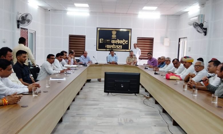 बालोतरा, 20 अगस्त। 21 अगस्त को भारत बंद आह्वान को लेकर जिला कलक्टर सुशील कुमार यादव की अध्यक्षता में जिला कलेक्ट्रेट सभागार में बैठक का आयोजन किया गया।