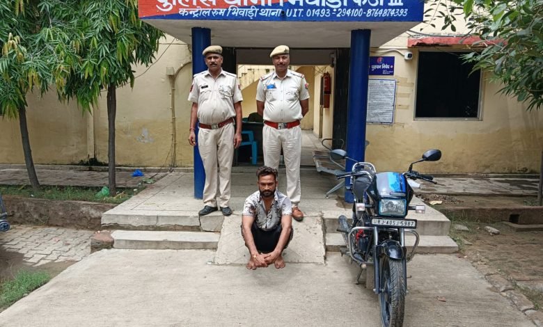 भिवाड़ी के फैज 3rd थाना अंतर्गत मोटरसाईकिल चोरी करने वाला शातिर मुल्जिम सन्नी को किया गिरफ्तार