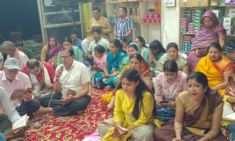 राधा नाम संकीर्तन मंडल द्वारा अग्रसेन चौक नई मंडी पर गीता पाठ एवं राधा नाम का किया गया संकीर्तन