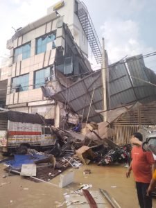 बारिश के बीच में 3 मंजिला इमारत गिरी