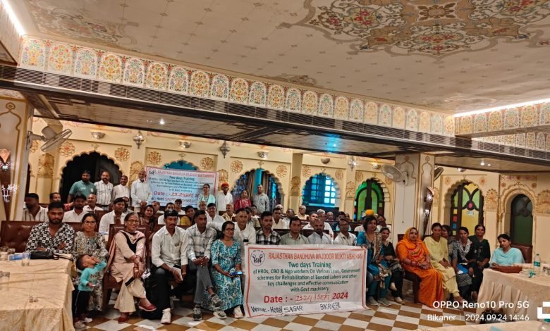 बिकानेर राजस्थान बंधुआ मजदूर मुक्ति अभियान और जय भीम विकास शिक्षण संस्थान जयपुर के संयुक्त तत्वाधान में होटल सागर, बीकानेर में दो दिवसीय कार्यशाला का सम्पन्न हुआ।