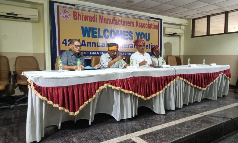 भिवाड़ी मैन्युफैक्चरर्स एसोसिएशन के अध्यक्ष चौ. जसबीर सिंह राणा की अध्यक्षता में बीएमए की 42 वीं वार्षिक आम सभा का आयोजन किया गया