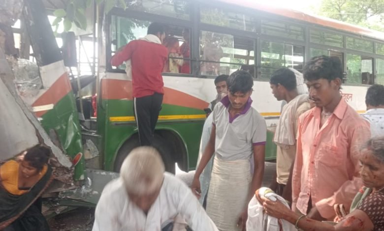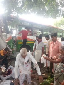 रोडवेज और प्राइवेट बस में आमने-सामने से हुई भिड़ंत दो दर्जन से अधिक यात्री घायल