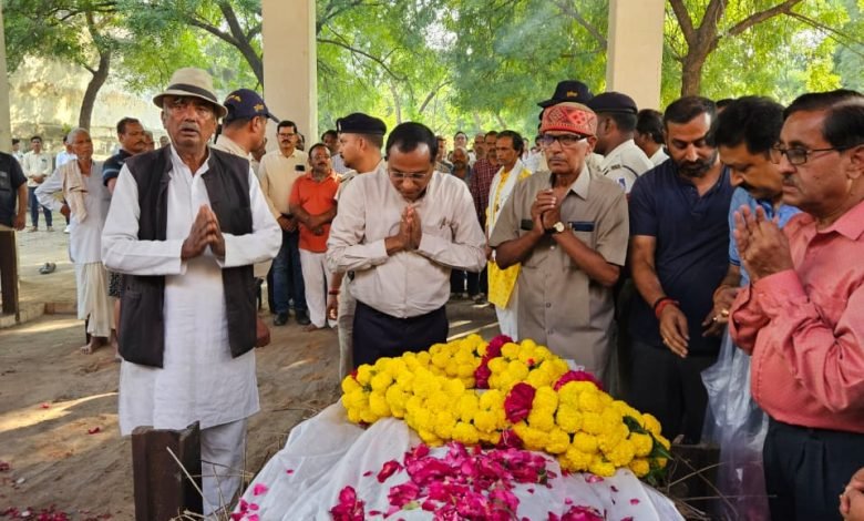 जहां जिला प्रशासन कलेक्टर पार्थ जयसवाल की ओर से पुष्पचक्र अर्पित करने तहसीलदार सुनील तिवारी एवं आरआई एके अरजरिया व पटवारी ने पुष्पांजलि दी। उनके पुत्र श्री निरंकार चौरसिया ने चिता को अग्नि दी