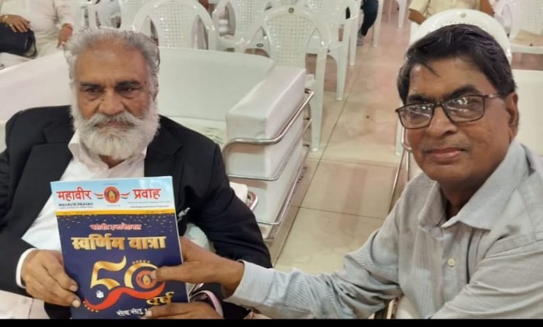मशहूर उद्योगपति श्री के एल पटावरी को सूरत में महावीर प्रवाह का स्वर्ण जयंती अंक प्रदान किया गया