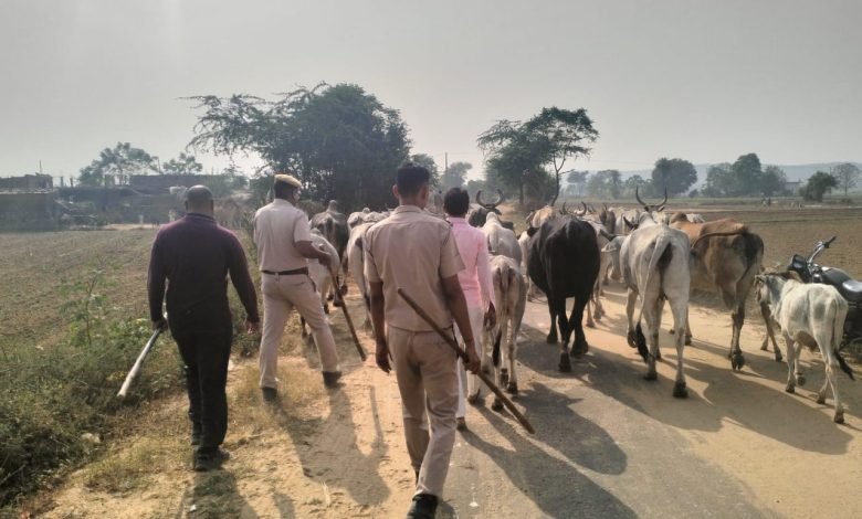 पुलिस ने गौ तस्करों पर कार्यवाही करते हुए 37 गायों को बरामद कर मोनी बाबा गौशाला में भेजा