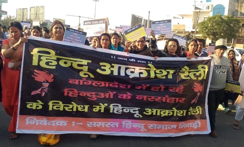 भिवाड़ी. बांग्लादेश में हिंदू समुदाय पर हो रहे अत्याचारों के संबंध में भिवाड़ी के हजारों हिंदूओं द्वारा मंशा चौक भिवाड़ी पर विरोध प्रदर्शन कर महामहिम राष्ट्रपति, भारत प्रधानमंत्री व महामहिम महासचिव, संयुक्त राष्ट्र संयुक्त राष्ट्र मुख्यालय, न्यूयॉर्क, अमेरिका के नाम भिवाड़ी एडीएम अश्विन क पवार को ज्ञापन सौंपा। ज्ञापन में कहा कि बांग्लादेश में हिंदू समुदाय पर हो रहे गंभीर अत्याचारों की ओर आकर्षित करना चाहते हैं। हिंदू समुदाय पर किए जा रहे इन हमलों से न केवल उनकी धार्मिक स्वतंत्रता और मौलिक अधिकार खतरे में हैं, बल्कि यह एक गहरी मानवीय त्रासदी बन गई है। जिसमें धार्मिक स्थलों पर हमलेः हिंदू मंदिरों, मूर्तियों और पूजा स्थलों पर लगातार हमले हो रहे हैं। भौतिक और मानसिक उत्पीड़नः हिंसा, धमकी, बलात्कार, और संपत्तियों की जब्ती जैसी घटनाएं बढ़ती जा रही हैं। न्यायिक उपेक्षाः दोषियों को सजा न मिलना और प्रशासनिक उदासीनता। आर्थिक और सामाजिक बहिष्कारः अल्पसंख्यकों को उनकी जमीन, रोजगार और अन्य अधिकारों से वंचित किया जा रहा है। अन्याय का शान्तिपूर्ण तरीके से विरोध करने पर इस्कॉन मंदिर के पूज्य संत चिन्मय कृष्णदास जी को गिरफ्तार कर लिया गया है तथा उन्हें प्रताड़ित किया जा रहा है। जिस पर भारत सरकार इस मामले को प्राथमिकता से उठाए और बांग्लादेश सरकार के साथ कूटनीतिक चर्चा कर हिंदू समुदाय की सुरक्षा सुनिश्चित करे। संयुक्त राष्ट्र मानवाधिकार आयोग और महासचिव इस विषय पर तत्काल हस्तक्षेप करें और बांग्लादेश पर अंतरराष्ट्रीय दबाब डालें। भारत में आने वाले हिन्दू शरणार्थियों को सुरक्षा और पुनर्वास प्रदान करने के लिए ठोस कदम उठाए जाएं। बांग्लादेश में धार्मिक स्वतंत्रता की रक्षा।