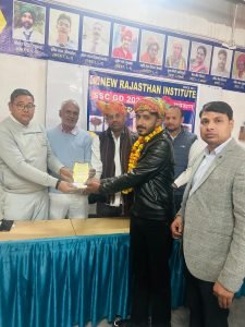 तिजारा के न्यू राजस्थान इंस्टीट्यूट में एसएससी जीडी 2024 में सलेक्शन होने वाले प्रतिभागियों का सम्मान समारोह आयोजित किया गया। कार्यक्रम के मुख्य अतिथि पूर्व चेयरमैन रामेश्वर सैनी, अध्यक्षता कर रहे भाजपा नेता देशपाल जी यादव, विशिष्ट अतिथि पूर्व वाइस चेयरमैन बने सिंह बिधूड़ी, एडवोकेट उमेश सैनी एवं इंस्टिट्यूट संचालिका सौम्या सैनी ने मां सरस्वती जी के सामने दीप प्रज्वलित कर कार्यक्रम की शुरुआत की। इस अवसर पर सलेक्शन हुए तीनों प्रतिभागियों का माला पहनाकर एवं साफा बांधकर सम्मानित किया गया। सलेक्शन हुए प्रतिभागियों के नाम है सचिन यादव पुत्र श्री लालचंद यादव तिजारा, अरविंद यादव पुत्र श्री दयाराम जी यादव इसरोदा, उमेश यादव पुत्र श्री सतीश यादव नसोपुर कोटकासिम। कार्यक्रम के अंत में संस्था निदेशक मोहनलाल सैनी ने कहा कि लक्ष्य को साधकर नियमित अध्ययन करने से सफलता प्राप्त होती है। इस अवसर पर उन्होंने सभी आए हुए अतिथियों का आभार व्यक्त किया, मंच संचालन एडवोकेट धर्मवीर सैनी ने किया, इस अवसर पर न्यू राजस्थान इंस्टीट्यूट के सैकड़ो विद्यार्थी मौजूद रहे।