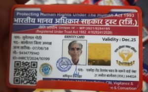 भारतीय मानव अधिकार सहकार ट्रस्ट के बालोतरा जिलाध्यक्ष सुमेरमल गोठी को संगठन की और से आईडेंटी कार्ड प्रदान किया गया