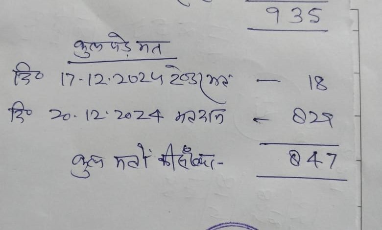 सोनभद्र बार एसोसिएशन चुनाव में कुल 935 मत में से 847 मत पड़े। जिसमें 18 मत टेंडर वोटिंग के शामिल हैं। आज 829 मत डाले गए।