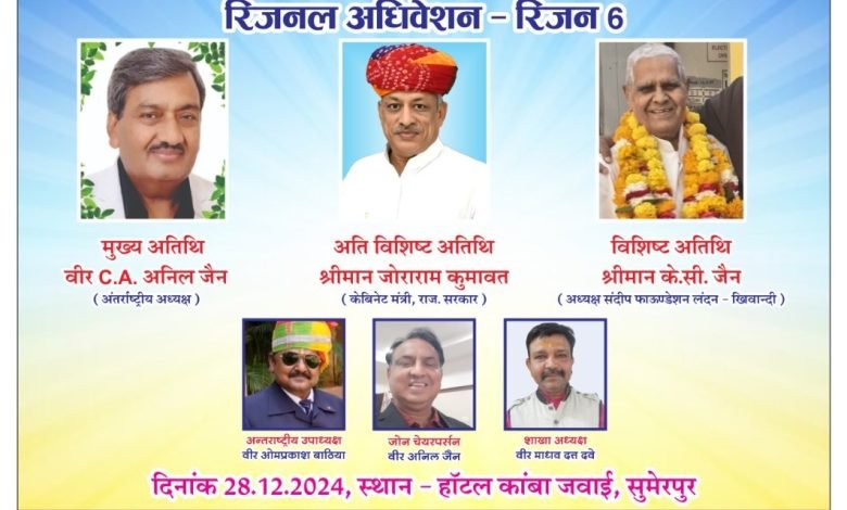 महावीर इंटरनेशनल अपेक्स रीजन 6 के *रीजनल अधिवेशन* का आयोजन 28 दिसंबर 2024 को सुमेरपुर में होगा