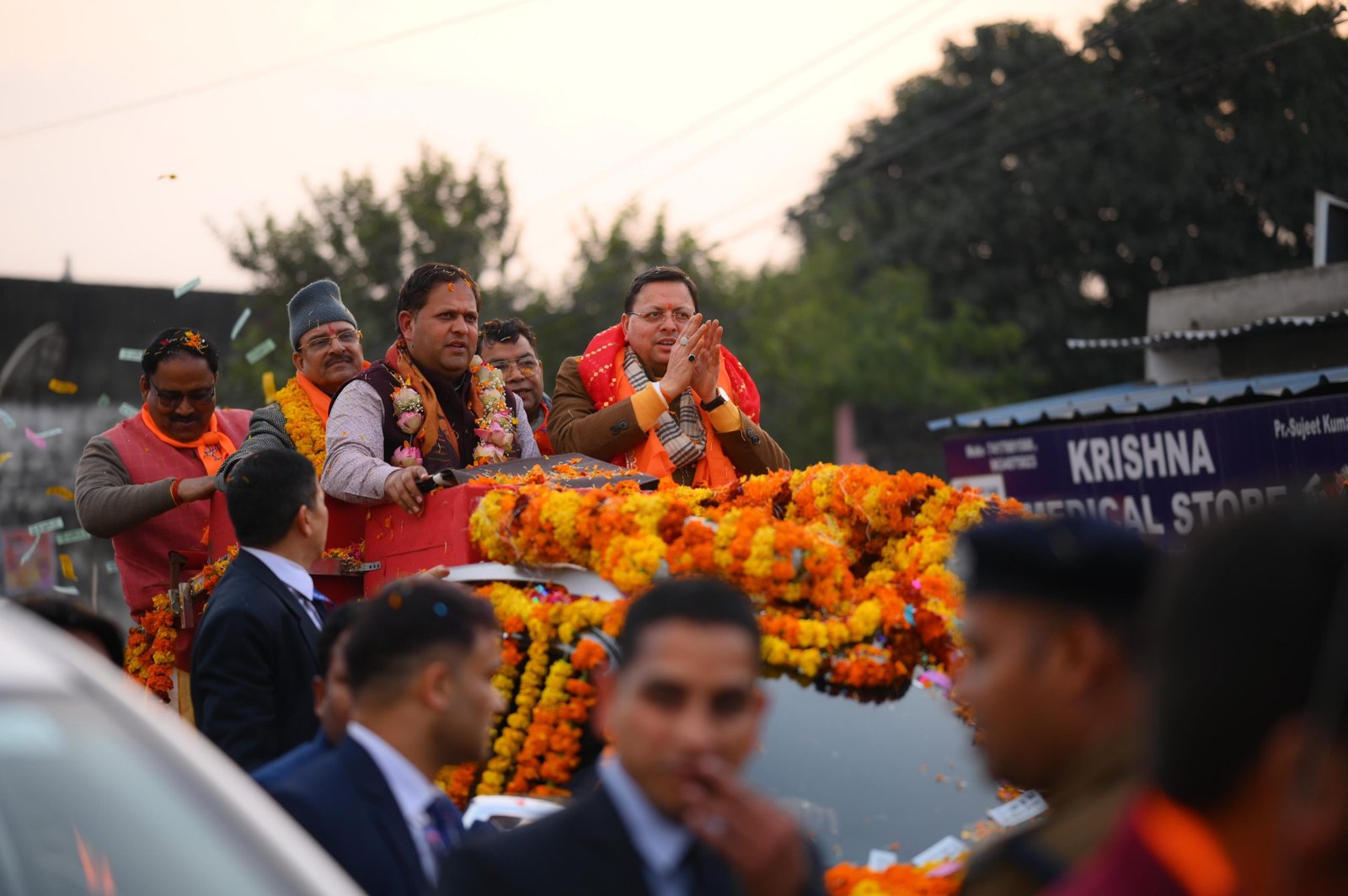 सीएम धामी ने रूद्रपुर में निकाला ऐतिहासिक रोड शो, उमड़ा जनसैलाब,रोड शो से भाजपामय हुआ रूद्रपुर का माहौल, भ्रम फैलाने की राजनीति कांग्रेस को फिर पड़ेगी भारीः धामी
