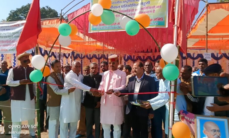 सतना। जिले के अंतर्गत ग्राम मेहुती मे 55 वीं अखिल भारतीय राष्ट्र पिता महात्मा गांधी स्मृति वॉलीबॉल प्रतियोगिता का शुभारंभ शहीद सुखराम सिंह गांधी खेल मैदान मे हुआ,कार्यक्रम के अतिथियों द्वारा शहीद सुखराम सिंह की प्रतिमा और गांधी जी की प्रतिमा पर माल्यार्पण कर ध्वजारोहण के साथ किया गया कार्यक्रम में अतिथियों का स्वागत माल्यार्पण और बैच लगाकर किया गया,खिलाड़ियों से परिचय प्राप्त किया गया,कार्यक्रम की रूप रेखा व प्रस्तावना प्रस्तुत करते हुए आयोजन समिति शिवा ग्रामीण विकास संस्थान,वॉलीबॉल आयोजन समिति मेहुती के सचिव बृजेन्द्र सिंह ने विस्तार से बताया कि यह चार दिवसीय अखिल भारतीय स्तर का मैच 1970 से लगातार आयोजित होता आ रहा है,आज तीसरी व चौथी पीढ़ी द्वारा मैच को आयोजन किया जा रहा है, उद्घाटन सत्र के बाद स्थानीय स्तर की प्रतियोगिताएं होगी,और कल से राष्ट्रीय स्तर की टीमों का खेल मे पदार्पण होगा जिसमें पंजाब ,हरियाणा ,उत्तराखंड, डेलही ,उत्तर प्रदेश , झारखंड , छतीसगढ़ और मध्य प्रदेश की टीमे हिस्सा लेंगी, लगातार मैच होते रहेगे। यहाँ तक कि रात्रिकालीन मैच भी सम्पन्न होंगे, 30 जनवरी की शाम को शहीद दिवस का कार्यक्रम सम्पन्न होगा जिसमे शहीद के परिजनों को सम्मानित किया जाता है | 31 जनवरी को सेमीफायनल और फायनल मैच के रोमांचक मुकाबला देखने को मिलेगें, समापन समारोह के अतिथि प्रदेश के यशस्वी उप मुखमंत्री माननीय राजेन्द्र शुक्ला जी होगें | यह प्रतियोगिता सभी के सहयोग से लगातार सम्पन्न होती है इस वर्ष प्रिज्म जानसन लिमिटेड द्वारा सहयोग किया जा रहा है। पहला उद्घाटन मैच बिरसिंहपुर और शहीद सुखराम सिंह क्लब मेहुती के बीच खेल गया जिसमें शहीद सुखराम सिंह टीम 2-0 से विजयी रही | कार्यक्रम के मुख्य अतिथि धर्मेन्द्र सिंह बराज उपाध्यक्ष जनपद पंचायत सोहावल ने कहा कि खेल हमारे जीवन मे सकारात्मक बदलाव लाते हैं जिससे हम जीवन मे अनुशासित होकर अपने लक्ष्य को प्राप्त करते हैं जब मेहुती ग्राम जैसे गाँव का कोई युवा किसी बड़े पद पर जाता है तो लगता है यही है खेल के सफल आयोजन का मतलब | कार्यक्रम की अध्यक्षता करते हुए ओंकार सिंह पूर्व जनपद अध्यक्ष ने कहा कि मेहुती जैसा बड़ा आयोजन ग्रामीण स्तर मे बहुत कम देखने को मिलता हैं मेहुती में लंबे समय से इस प्रतियोगिता में शामिल होता हूँ मुझे गर्व इस आयोजन पर | कार्यक्रम मे अति विशिष्ट अतिथि देवेन्द्र मिश्रा ए जी एम प्रिज़म जानसन लिमिटेड मनकहरी ने कहा कि वालीवाल का इतिहास बहुत पुराना है यदि कोई खिलाड़ी राज्य या राष्ट्रीय स्तर पर जाता है तो वह अपने ग्राम परिवार जनों का नाम रोशन करता है | स्वस्थ शरीर मे स्वस्थ मन का विकास होता है | खिलाड़ी जब एक खिलाड़ी खेल भावना से खेलता है तो क