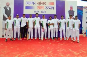 अलवर सांसद खेल उत्सव के तीसरे चरण में आयोजित क्रिकेट प्रतियोगिता के क्वार्टर फाइनल मैच के दौरान मैदानों में दिखाई दिया संघर्षशील मुकाबला