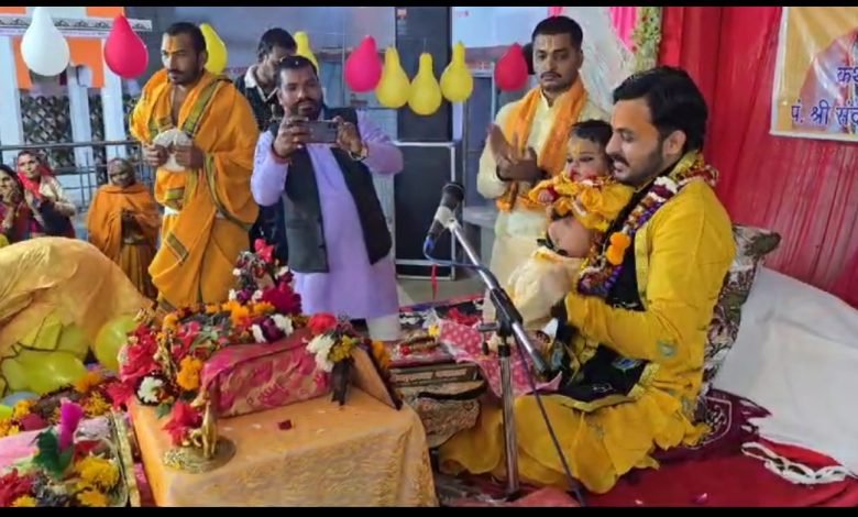 श्रीमद् भागवत महापुराण के पांचवें दिन कृष्ण जन्मोत्सव बड़े धूमधाम से हुआ संपन्न हजारों की संख्या में उपस्थित रहे भक्त