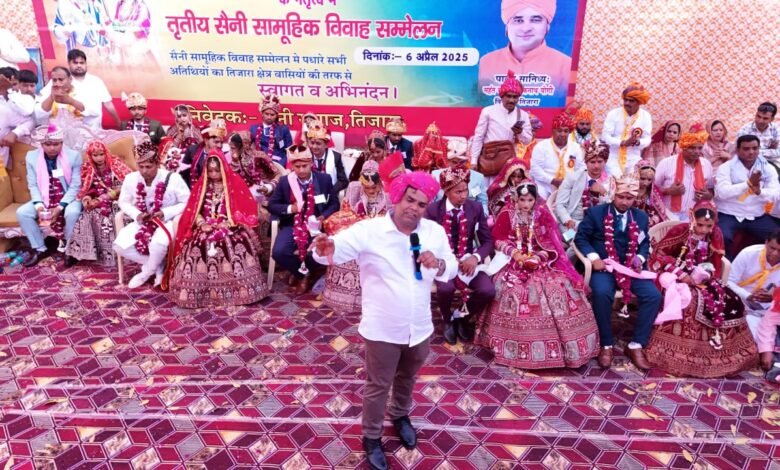 तिजारा, 6 अप्रैल — रामनवमी के शुभ अवसर पर सैनी आदर्श सामूहिक विवाह समिति, तिजारा द्वारा तृतीय सामूहिक विवाह सम्मेलन का आयोजन भव्य रूप से किया गया। यह कार्यक्रम एमपी जैन फार्म हाउस में सम्पन्न हुआ, जिसमें समाज के 16 जोड़ों ने विवाह के पवित्र बंधन में बंधकर एक नई शुरुआत की।