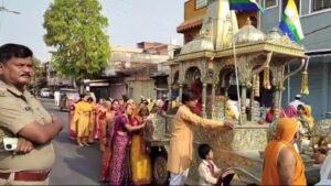 प्रातः 6 बजे पंडित संकेत जैन के निर्देशन में जिनाभिषेक, शांतिधारा और पूजन का विधि-विधान से आयोजन हुआ। इसके पश्चात प्रातः 8 बजे आर्यिका श्री ऋजुमती माताजी ससंघ 11 आर्यिकाओं के पावन सान्निध्य में रजत रथ में बिराजमान श्री महावीर भगवान की प्रतिमा जो जैन धर्मालंबियों द्वारा स्वयं खींचकर नगर के प्रमुख मार्गों से निकले जिनके दर्शन के लिए जैन समाज अपने अपने दरवाजे पर रंगोली बना रखी थी और सभी ने आरती कर पूजा अर्चना की। शोभायात्रा में डीजे, ढोल-नगाड़े, भजन-कीर्तन और जयघोष से वातावरण भक्तिमय हो गया।