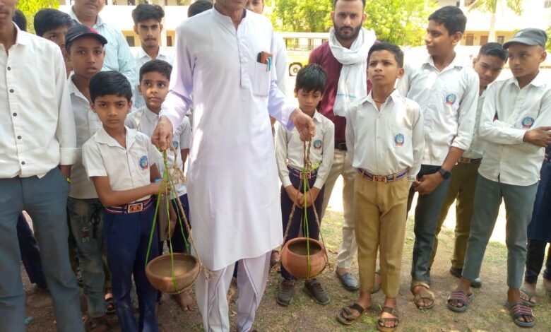 अखिल भारतीय विद्यार्थी परिषद की नगर इकाई देवेंद्रनगर द्वारा पेड़ो पर बंधे गए सकोरा