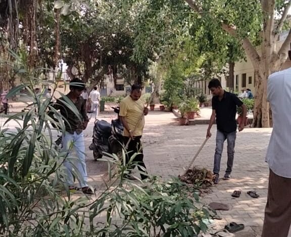 समाज सेवा शिविर के माध्यम से की स्कूल प्रांगण की सफाई