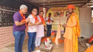 भाजपा प्रदेश कार्य समिति सदस्य व व्यापार प्रकोष्ठ के प्रदेश सह संयोजक बांठिया ने क्षेत्र के उमरलाई गांव स्थित श्री खुशालगिरी महाराज की जीवित समाधि जूना अखाड़ा स्थित ब्रह्मलीन रामानंद सरस्वती महाराज की समाधि स्थल पर पूजा अर्चना की उसके बाद मठ में बने भगवान भोलेनाथ के मंदिर में जलाभिषेक कर पूजा अर्चना की।मठ के महंत सोमानन्द सरस्वती महाराज के दर्शन कर आशीर्वाद लिया वही महाराज ने बांठिया का दुप्पटा व भगवान की प्रतिमा देकर स्वागत किया।वही हरियालो राजस्थान के तहत पौधारोपण कर पर्यावरण चेतना को लेकर पौधे वितरण भी किए।उसके बाद बांठिया ने जोधपुर के कायलाना रोड़ स्थित मिल्ट्री एरिया में बने भीम भिड़क भीमेश्वर महादेव मंदिर में पूजा अर्चना कर देश मे अमन चैन व खुशहाली की कामना की।वही वहां पर चातुर्मासिक कर रहे सिवाना के अभय धाम महंत नृत्यगोपालराम महाराज के दर्शन कर आशीर्वाद लिया।