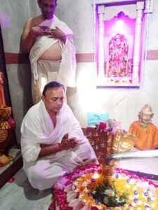भाजपा प्रदेश कार्य समिति सदस्य व व्यापार प्रकोष्ठ के प्रदेश सह संयोजक बांठिया ने क्षेत्र के रामसीन मुगड़ा स्थित पूर्णदास महाराज की राम कुटिया में बनाए गए सवा लाख रुद्राक्ष के शिवलिंग की पूजा अर्चना कर अभिषेक किया व