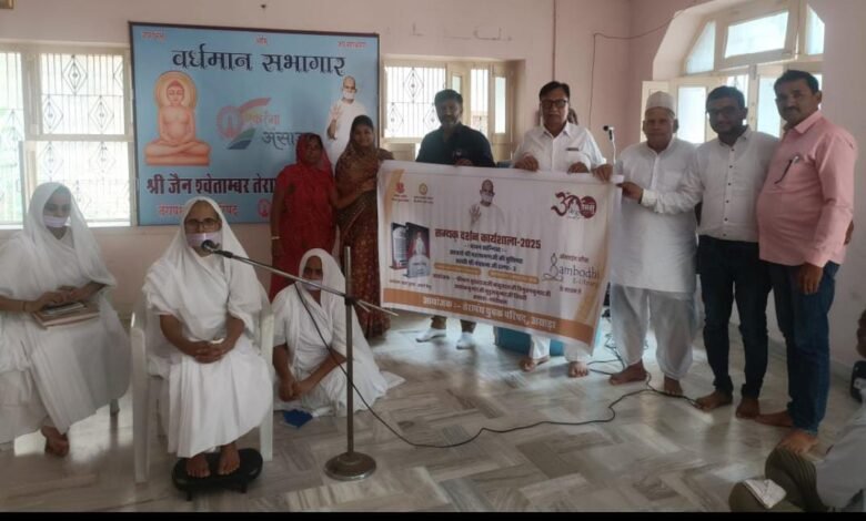 01.09.25।तेरापंथ धर्मसंघ का एकरंगा क्षेत्र असाडा में साध्वी श्री मेघप्रभा जी के सानिध्य में अखिल भारतीय तेरापंथ युवक परिषद और समन संस्कृति द्वारा आयोजित सम्यक दर्शन कार्यशाला 2025 के बैनर का विमोचन किया गया। साध्वी श्री जी के सानिध्य में यह कार्यशाला 1 सितंबर 2025 से 15 सितंबर 2025 तक आयोजित होगी। जिसके प्रायोजक सुखराज जी, बाबूलाल जी ,त्रिभुवन कुमार जी, अशोक कुमार जी, मृदुल कुमार जी सिंघवी असाडा – गांधीधाम का आभार ज्ञापन किया ।बैनर का विमोचन तेरापंथ भवन में किया गया । तेरापंथ सभा ,तेरापंथ युवक परिषद अध्यक्ष सुशील बालड,युवक परिषद परामर्शक प्रवीण जैन,तेरापंथ युवक परिषद मंत्री पीयूष बालड ,महिला मंडल अध्यक्षा रक्षा देवी बालड़ और गणमान्य नागरिकों की उपस्थिति रही। साध्वी श्री जी ओर सब प्रतिभागियों को कीट दिया गया।