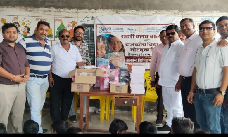 रोटरी क्लब बालोतरा ने विद्यालय में बच्चों को पाठ्य सामग्री व स्वच्छता सामग्री प्रदान की