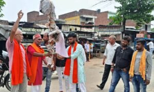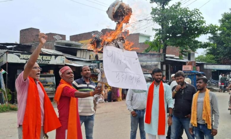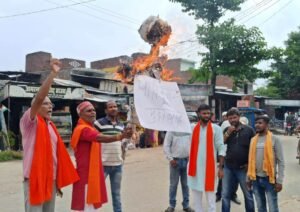 बस्ती। एशिया कप 2025 का दुबई में भारत-पाकिस्तान के बीच मैच का बस्ती में मुखर विरोध हुआ। शिवसेना उद्धव गुट के अध्यक्ष ई. रूपेन्द्र श्रीवास्तव के नेतृत्व में शिव सैनिक महसो चौराहे पर एकत्र हुये और बीसीसीआई के विरोध में नारा लगाते हुये पाकिस्तान का पुतला फूंका।