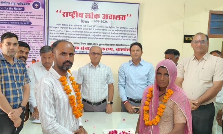 बालोतरा में आयोजित राष्ट्रीय लोक अदालत में एक भावुक क्षण सामने आया, जब कई वर्षों से अलग रह रहे पति-पत्नी फिर से एक हो गए। जिला एवं सेशन न्यायाधीश एवं जिला विधिक सेवा प्राधिकरण के अध्यक्ष एम.आर. सुथार के समझाइश और प्रेरणा से दोनों ने पुराने मतभेद भुलाकर साथ रहने का फैसला किया।