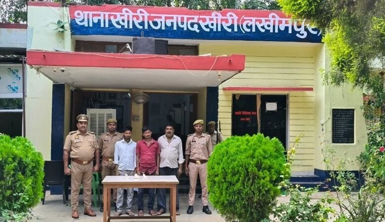 थाना खीरी पुलिस द्वारा 03 नफर वांछित अभियुक्तों को आलाकत्ल के साथ गिरफ्तार किया गया
