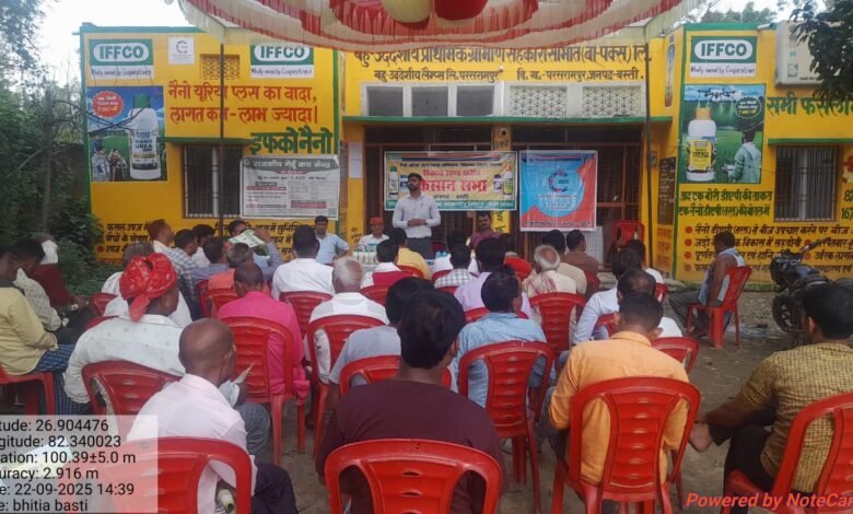 बस्ती:नैनो जागरूकता अभियान विकासखंड परशुरामपुर बी पैक्स परशुराम पुर पर किसान सभा आयोजित